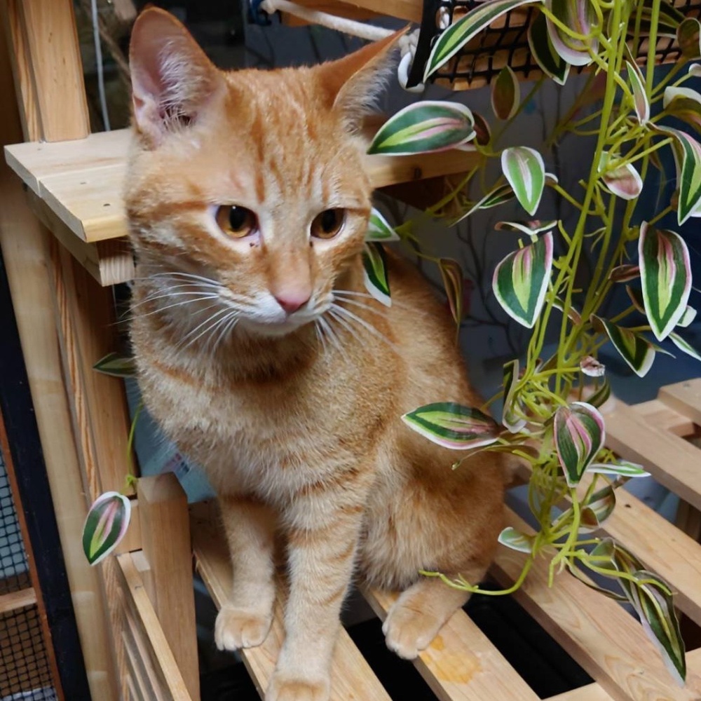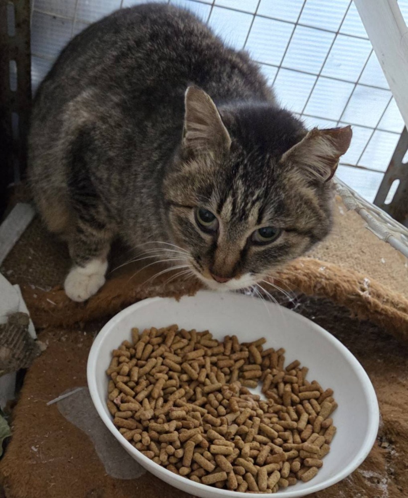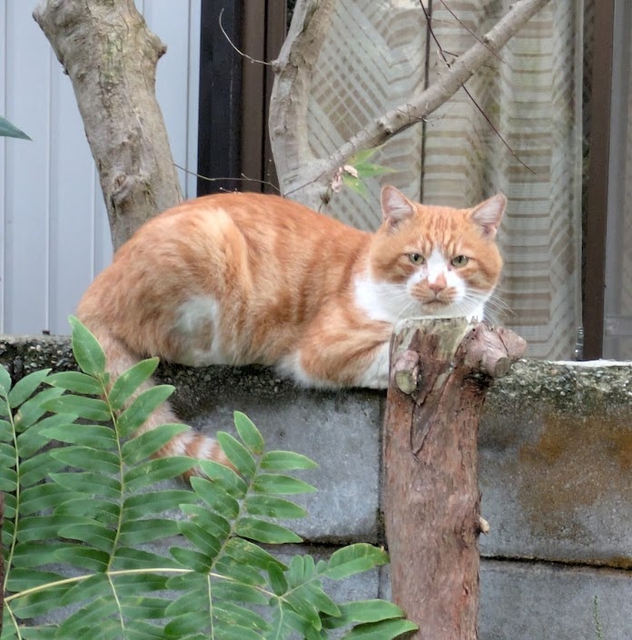 スタッフ自宅庭にきているTNRした茶白猫さん。たくさん食べてね。
